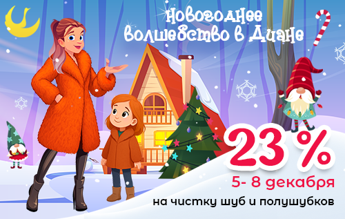 С 05 по 08 декабря скидка 23% на чистку шуб и полушубков