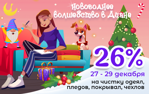 С 27 по 29 декабря скидка 26% на чистку одеял, пледов, чехлов!