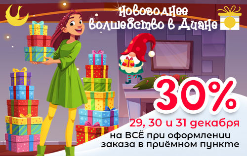 С 29 по 31 декабря скидка 30% на всё при оформлении заказа в приёмном пункте!